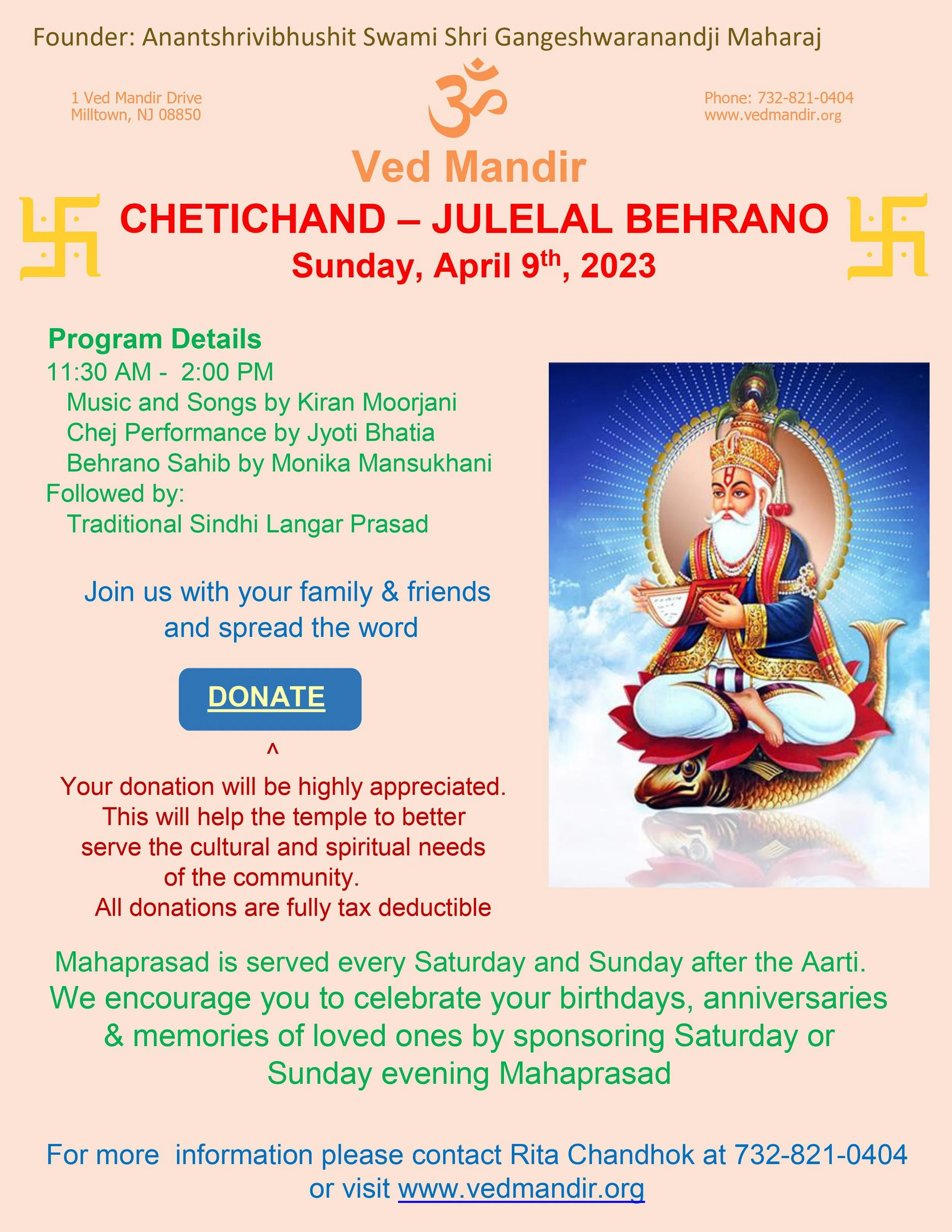 Back to All Events Chetichand – Julelal Behrano Sunday, April 9, 2023 5:00 PM 6:00 PM Google Calendar ICS Donate